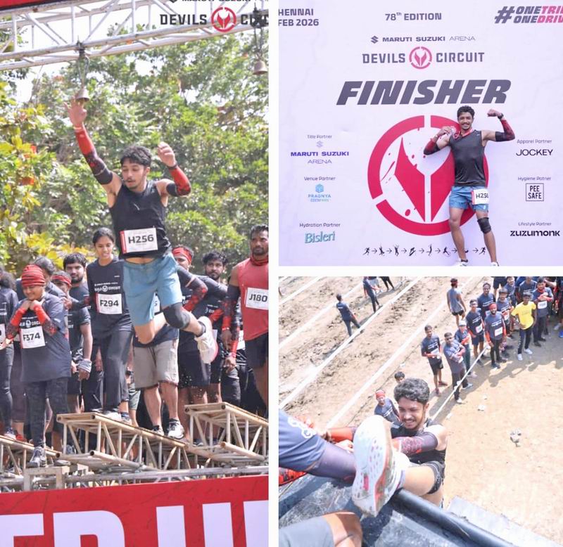 | कोयंबटूर निवासी श्री प्रवीण व अंजू माहेश्वरी के सुपुत्र एंंव कोयंबटूर माहेश्वरी युवा परिषद सदस्य रवि माहेश्वरी ने 1 फरवरी 2026 को चैन्नई मे आयोजित मारुति सुजुकी ऐरेना डेविल सर्किट (Arena Devils Circuit) के 5 KM की बाधा (Obstacles) दौड में भाग लेते हुए न केवल अपनी प्रतिभा का परिचय दिया वरण दौड़ पूरी करके मेडल भी पाया।मैराथन के विपरीत, जहां सड़कें पक्की होती हैं और दौडऩा आसान होता है, यहां पांच किलोमीटर की दौड़ एक चुनौती है, क्योंकि सतह पर पानी, कीचड़, घास और बड़े-बड़े पत्थरो पर कदम रख के दौडना शामिल है। इस दौड में 15 मिलिट्री स्टाइल की बाधाओ (obstacles) का सामना करते हुए दौडऩा, चढना, छलांगना, कुदना, उछलना, रेगना पडता है जैसे -(1) वाटर वाल्ट (Water Vault) - सामने से तेज धार वाले प्रेशर वाले पानी मे दौडना।(2) आगे बढना (Step Up) - तेज़ दौडऩा, छलांग लगाना, घंटी बजाना—पानी की छपाक (स्प्लैश) के साथ।(3) रेंगना (Crawl of Duty) - झुकते हुए, ऊपर के तारो को बिना छुए रेंगते हुए बढना।(4) लटक के भागना (Monkey Crawl) - रस्सी से लटक कर झुलते हुए आगे बढना।(5) रस्सी की दीवार (Rope Ridge) - 12 फिट ऊंची रस्सी की दीवार पर चढना।(6) पीठ से चलना (Back straight) - पैर एवं पीठ से दो नजदीक की दीवारो मे उतरना(7) बर्फ में जमना (Brain Freeze) - 20 टन बर्फ के पानी मे कुदना एवं तैरना।(8) शिखर (The Summit) - 14 फुट ऊंची ष्ट-आकार की दीवार पर तेज़ी से दौड़कर आधे रास्ते तक पहुंचना और फिर खुद को ऊपर खींचना।कीचड़ के गड्ढे, दीवारें, रस्सियां, पानी, बर्फ और बहुत कुछ, जो आपकी ताकत, सहनशक्ति, दृढ़ संकल्प और मानसिकता का परीक्षण करने के लिए डिज़ाइन की गई हैं।फिटनेस के प्रति उत्साही रवि माहेश्वरी द्वारा इस दौड को एक चुनौतीपूर्ण और रोमांचक अनुभव के साथ सफलतापूर्वक पूरी करने पर समाज की ओर से बहुत बहुत बधाई। |
