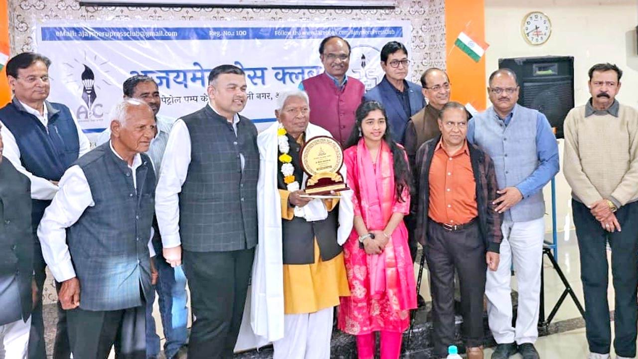 | अजयमेरू प्रेस क्लब सभागार में 15 फरवरी 2026 को आयोजित साहित्यधारा कार्यक्रम में विशिष्ट अतिथि के रूप में वरिष्ठ साहित्यकार डॉ. विनोद सोमानी 'हँस' का उनकी राजस्थानी एवं हिन्दी सृजन की सुदीर्ध सेवाओं के लिए क्लब के अध्यक्ष डॉ. रमेश अग्रवाल, उपाध्यक्ष राजकुमार पारीक एवं कोषाध्यक्ष सत्यनारायण जाला ने शॉल, माला और विशिष्ट साहित्यकार सम्मान का प्रतीक चिन्ह देकर अभिनन्दन किया। डॉ. अनन्त भटनागर व श्री उमेश चौरसिया ने श्री हंस के कृतित्व व व्यक्तित्व पर प्रकाश डाला। श्री हंस के पुत्र डॉ.(सीए) श्याम सोमानी ने अनेक प्रसंग पिताश्री के सुनाये तथा सुपौत्री वसुन्धरा सोमानी ने सुन्दर कविता सुनाकर तालिया बटोरी। कार्यक्रम की अध्यक्षता पूर्व कुलपति डॉ. के.सी. शर्मा ने की व संचालन कवि व्यंगकार गुप्ता ने किया।इस अवसर पर अनेकों पत्रकार व कवि उपस्थित थे जिन्होंने डॉ. रमेश अग्रवाल, अनंत भटनागर, डॉ. श्याम सोमानी, डी.एस. त्रिपाठी, प्रदीप गुप्ता, उमेश चौरसिया, सुन्धवा सोमानी, आर.जे. अंजना पारीक, अनिता यादव, रामावतार यादव, जयगोपाल प्रजापति, तस्दीक अहमद, संदीप पांडे, पूर्णिमा पाठक, डॉ. पूनम पांडे, नीता भटनागर, डॉ. केसी शर्मा, कुलदीप खन्ना, विजय शर्मा, गौरव दुबे, डॉ. पुष्पा क्षेत्रपाल, डॉ. लाल थडानी और दीपशिखा क्षेत्रपाल ने गीत, गजल, छंद, मुक्तक आदि प्रस्तुत किये। |