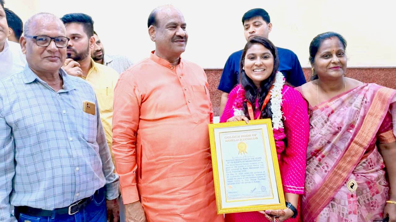 02-Sep - लोक सभा स्पीकर ओम बिरला जी के हाथों राशि माहेश्वरी, बूंदी ने प्राप्त किया वल्र्ड रिकॉर्ड का सर्टिफिकेट
