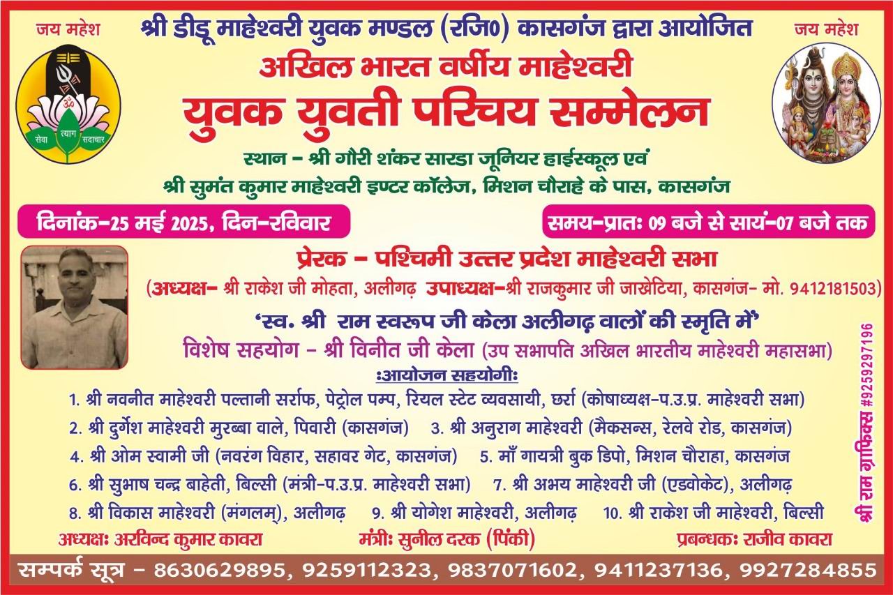 26-May - कासगंज में माहेश्वरी युवक युवती परिचय सम्मेलन का आयोजन सम्पन्न