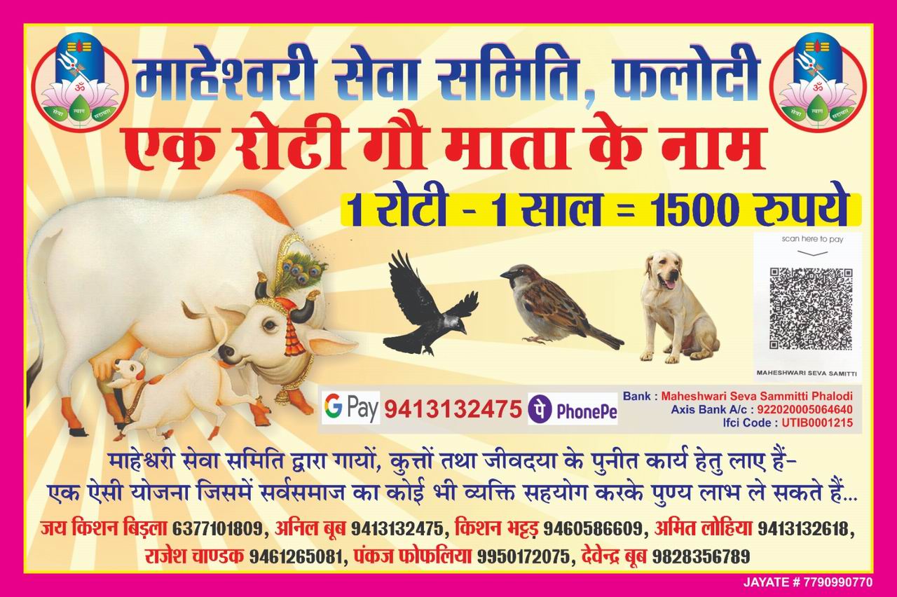 07-Jun - माहेश्वरी सेवा समिति फलोदी द्वारा चालू की गयी मुहीम 'एक रोटी गौ माता के नाम' को तीन साल पुरे