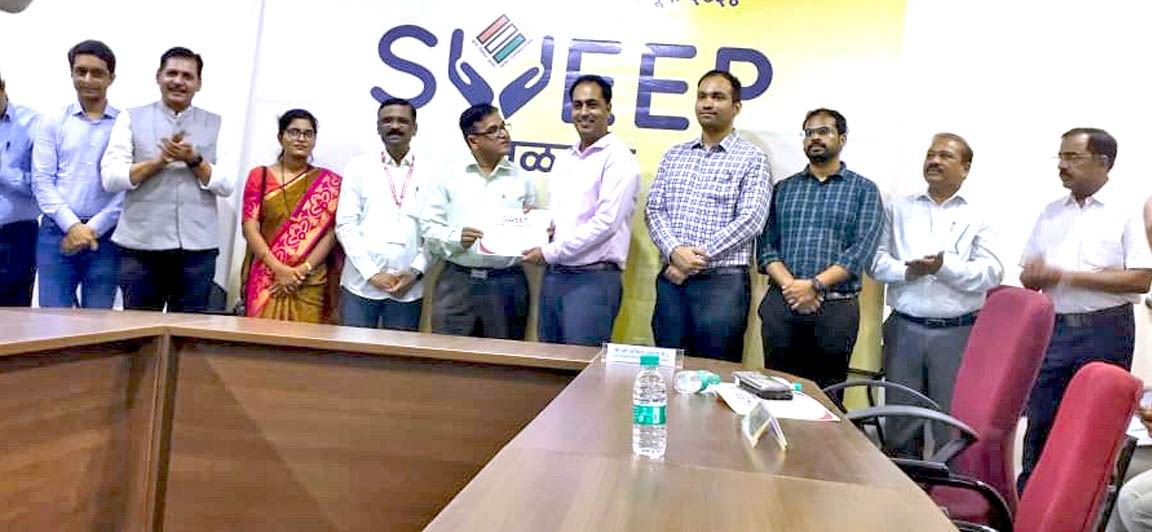 22-May - जलगांव जिले में मतदान के लिए प्रभावी जागरूकता पैदा करने के लिए मदन लाठी को जिला कलेक्टर द्वारा सम्मानित किया गया