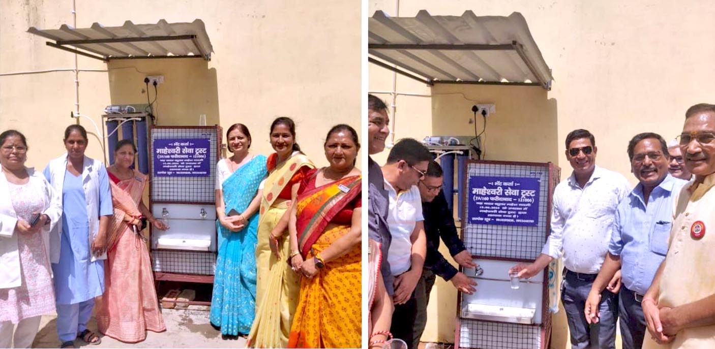 माहेश्वरी सेवा ट्रस्ट फरीदाबाद द्वारा आरओ युक्त वाटर कूलर लगाया गया