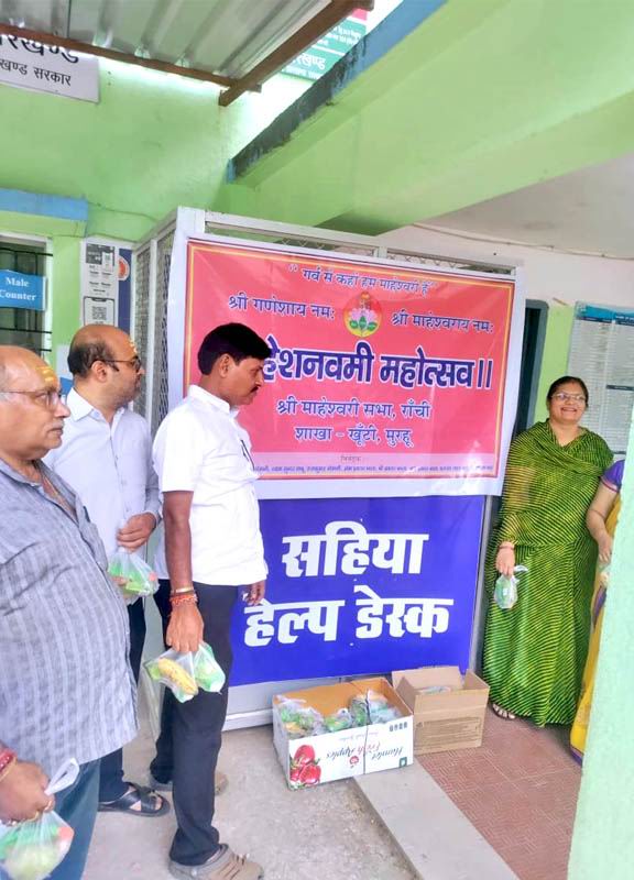 झारखंड की राजधानी रांची से करीबन 45 किलोमीटर दूर खूंटी एवं मुरहू में माहेश्वरी समाज के 10 परिवार बसते हैं। 5157 वां माहेश्वरी वंशोत्पति दिवस खूंटी मुरहू के समस्त परिवार ने मिलकर काफी धूमधाम से मनाया। इस शुभ अवसर पर प्रात: सभी परिवार के सदस्यों ने शिवालय में जाकर सामूहिक रुद्राभिषेक एवं पूजा अर्चना की। इसके बाद सेवा कार्य किया। सदर अस्पताल, मातृ शिशु अस्पताल में जाकर 100 मरीजों के बीच फल, जूस और बिस्कुट का वितरित किया। समाज के इस विशेष आयोजन में श्री गोवर्धन शारदा, श्री नंदकिशोर सोमानी, श्री श्याम सुंदर साबू, श्री राजकुमार सोमानी, श्री ओम प्रकाश भाला, श्री श्रीप्रकाश भाला, श्री जयप्रकाश भाला, श्री बजरंग लाल बाहेती, श्री माधव भाला, श्री मनीष सोमानी, श्रीमती सरोज माहेश्वरी, श्रीमती मोनिका भाला एवं श्रीमती बीना भारती का सहयोग रहा।