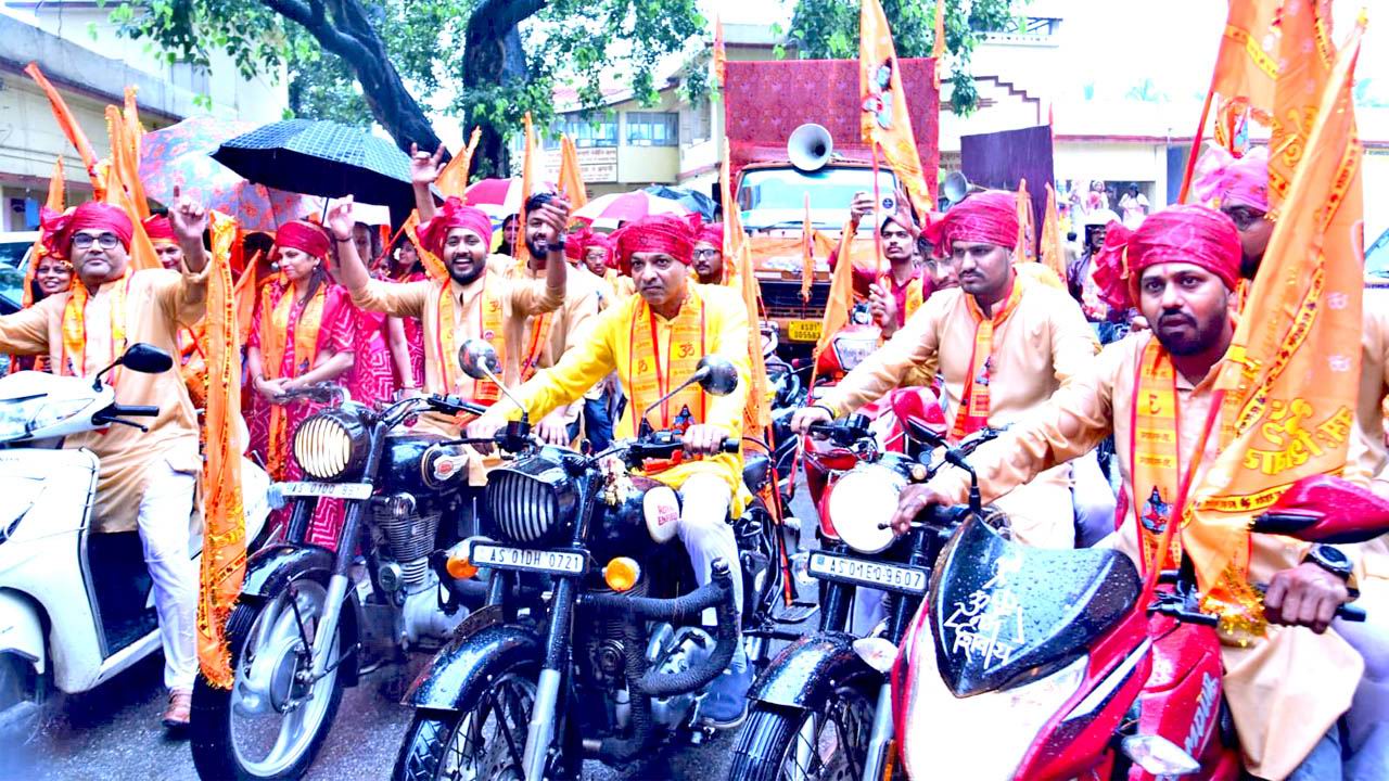 माहेश्वरी सभा के सचिव सुरेंद्र लाहोटी ने बताया कि रविवार को सुबह 8:१5 बजे गुवाहाटी गौशाला से शोभा यात्रा नगर के मुख्य मार्गो से भ्रमण करती हुई माहेश्वरी भवन तक पहुंची। इस शोभा यात्रा को समाज के वरिष्ठ सदस्य नवल किशोर काबरा ने हरी झंडी दिखाकर रवाना किया। इस समय उनके साथ आसाम माहेश्वरी सेवा ट्रस्ट के अध्यक्ष भगवान दास दम्मानी, माहेश्वरी सभा के अध्यक्ष सीताराम बिहानी, सचिव सुरेंद्र लाहोटी, महेश नवमी उत्सव के संयोजक नारायण गट्टानी, सहसंयोजक दीनदयाल मुंदडा और अरविंद सोनी, शोभा यात्रा संयोजक रमेश चांडक, पवन साबू, संदीप राठी एवं समाज के गणमान्य व्यक्ति उपस्थित थे। शोभा यात्रा में माहेश्वरी महिला समिति की सदस्याएं लाल चुनडी साड़ी में साफा बांधकर जय महेश के नारे लगाते हुए चल रही थी। युवा संगठन और अन्य माहेश्वरी इकाई संगठन के सदस्य केसरिया कुर्ता पजामा और साफा बांधे शोभा यात्रा में चल रहे थे। शोभायात्रा में भगवान महेश की झांकी आकर्षण का केंद्र थी। शोभा यात्रा में आसाम माहेश्वरी सेवा ट्रस्ट, माहेश्वरी युवा संगठन, माहेश्वरी महिला समिति, महेश सत्संग समिति, महेश योग समिति के सदस्य उपस्थित थे।