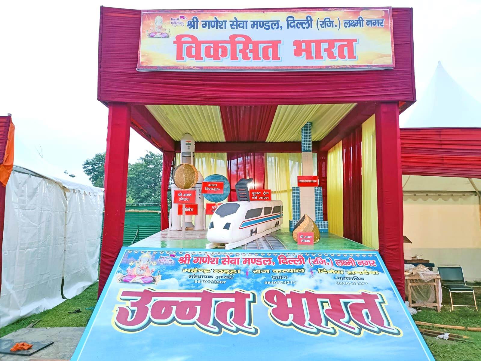 श्री गणेश सेवा मंडल, दिल्ली (रजि.), लक्ष्मीनगर द्वारा दिल्ली के सबसे लोकप्रिय व प्रसिद्ध 23वें गणेश महोत्सव 'दिल्ली का महाराजा' का आयोजन लक्ष्मी नगर, बैंक एनक्लेव के प्रियदर्शनी विहार स्थित डीडीए मिनी क्रिकेट स्टेडियम में 7 सितंबर से 11 सितंबर तक किया गया। पंडाल के मुख्य द्वार पर महाराष्ट्र के अष्टविनायक की झलकियाँ देखने को मिली। श्री गणेश सेवा मंडल के संस्थापक अध्यक्ष महेंद्र लढा ने बताया कि संस्था हर बार प्रगतिशील भारत के नई थीम से लोगों को संदेश देने का प्रयास करती है। पिछले साल चंद्रयान 3 एवं जी 20 को दर्शाया था। इस बार का थीम 'विकसित भारत 2047' है जिसके तहत प्रगति का प्रारूप वंदे भारत ट्रेन का मॉडल प्रस्तुत किया गया। विकसित भारत 2047 के मुख्य स्तंभ, विकास, शिक्षा एवं स्वास्थ एवं फीट इंडिया की झलकियां यहां मिली। महेंद्र लढा ने बताया कि इसके अलावा श्रीअन्न (मिलेट) को अपनाने के संदेश लोगों तक पहुंचाने के लिए इस बार गणपति बप्पा को 'श्रीअन्न' से बने मोदक का भोग लगाया गया। फीट इंडिया को बढ़ावा देने एवं बीमार होने से पहले स्वास्थ्य जांच कर बीमारी के प्रति लोगों को सजग रहने के लिए जागरूक करने के लिए नि:शुल्क स्वास्थ्य जांच शिविर, रक्त दान शिविर, मैमोग्राफी टेस्ट भी लगाया गया।