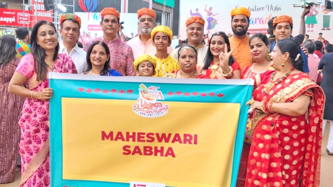 माहेश्वरी युवा परिषद एंव सांस्कृतिक समिति के तत्वाधान मे समाज के विभिन्न सदस्यो ने कोयंबटूर दिवस के अवसर पर आयोजित किये गये सांस्कृतिक कार्यक्रम 17वीं कोयंबटूर विझा परेड में 24 नवम्बर 2024, रविवार को भाग लिया। कार्यक्रम में कोयंबटूर के विभिन्न समाज एंंव समुदाय के नागरिको ने भाग लेते हुए अपने अपने समुदाय की सांस्कृतिक पहचान की झलक दिखलाते हुए परेड मे प्रस्तुतिया दी। परेड मे कोयंबटूर के सांस्कृतिक एवं इतिहास के समागम को दिखाते हुए विभिन्न कलाकारो के दलो द्वारा गीत संगीत, नृत्य, लोक कलाओ का अद्भुत प्रदर्शन किया। इसी क्रम में सांस्कृतिक समिति, माहेश्वरी सभा कोयंबटूर की टीम ने राजस्थानी वेश-भूषा के पहनावे के साथ गणगौर की सवारी निकाली एवं राजस्थानी गीत-नृत्य जैसे घुमर, गंवई, फाग, गरबा ईत्यादी की प्रस्तुति देते हुए परेड मे चार चांद लगा दिये। राह मे गुजरते हुए सभी दर्शको का मन मोह लिया। माहेश्वरी समाज की ओर से सुरभि महिला मंडल सचिव अनु कांकाणी, सदस्या उर्मिला कांकाणी, सांस्कृतिक समिति एवं सभा सदस्य नीतु मण्डोवरा, गोविंद मण्डोवरा, अनुराग माहेश्वरी, यश मण्डोवरा, अनुपमा मण्डोवरा, अमित मण्डोवरा, सुरेश मालाणी, यश मालाणी, कार्तिक-हर्षित मण्डोवरा, ज्योति मालाणी, किरण मालाणी, विष्णु लोया इत्यादि ने भाग लेते हुए शानदार एंव मनमोहक राजस्थानी नृत्यो की प्रस्तुति दी।