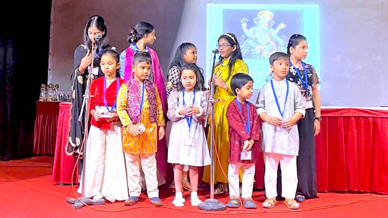 आयोजन के अध्यक्ष मोहन लाल पारीक ने कहा कि बच्चों का यह प्रयास सराहनीय है। नागौरी परिवार ने यह आयोजन करके ना केवल स्व रामगोपाल नागौरी को श्रद्धांजलि दी है बल्कि हिंदी की सेवा भी कर रहा है। उन्होंने कहा कि बड़ों की जि़म्मेदारी बनती है कि वे सहज रूप से हिंदी का व्यवहार करें। इस गलत व झूठे शरारती जाल में न फँसें कि अंग्रेजी अन्तराष्ट्रीय भाषा है। मेरा युरोप का अनुभव है कि अंग्रेजी केवल इंग्लैंड में ही है। जर्मनी, फ्रांस, इटली व स्विजरलैंड आदि में अंग्रेजी विरोध है। उन्होंने कहा कि हिंदी पूर्णतया वैज्ञानिक भाषा है। कार्यक्रम में शिव कुमार लोहिया, भागीरथ चांडक, जगदीश प्रसाद अग्रवाल, रमेश भैया, मनोज सोदानी, विनोद भराडिय़ा, भगवती प्रसाद मूंदड़ा, संजय बिन्नानी, प्रेम सादानी, सुनील तोषनीवाल, कमल किशोर लोहिया, किशन गोपाल मांधना, मुकुंद सोमानी, महेश राठी, शशि भैया, संगीता सोदानी, मनाली तोषनीवाल, प्रेमलता लोहिया आदि गणमान्य लोग उपस्थित रहे। कार्यक्रम का कुशल संचालन श्रीमती अलका माहेश्वरी ने किया। आयोजन को सफल बनाने में नरेश, सूरज, कुलदीप, राहुल, माधव, देवेश, श्रीमती प्रभा, सरिता, निशा, उपमा, राजश्री, शशि नागोरी, प्रवीन, प्रिया, वैदेही लोहिया, भरत गगड, विवेक मीना लाहोटी का योगदान रहा।