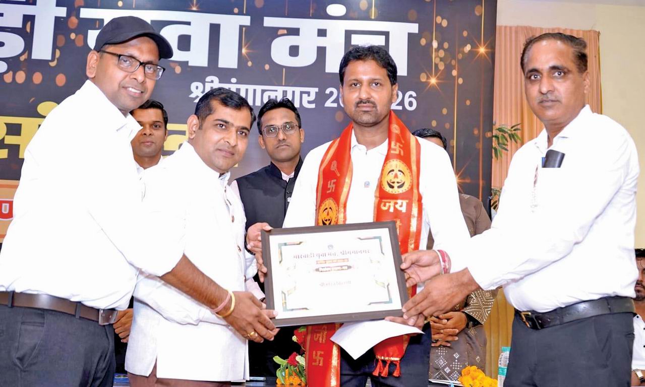 श्रीगंगानगर। अखिल भारतीय मारवाड़ी युवा मंच के राष्ट्रीय अध्यक्ष सुरेश एम जैन का नागरिक अभिनन्दन किया गया। इस मौके पर स्थानीय इकाई के नए अध्यक्ष गौरव बिहाणी, सचिव शिव सिंगल, कोषाध्यक्ष केशव गर्ग और टीम को शपथ दिलाई गई। टांटिया यूनिवर्सिटी के वाइस चेयरमैन डॉ. मोहित टांटिया को युवा चैतन्य सम्मान प्रदान किया गया। मंच के प्रांतीय अध्यक्ष सुरेश अरोड़ा ने अध्यक्षता की, नगर परिषद की पूर्व सभापति करूणा अशोक चांडक एवं मंच के राष्ट्रीय उपाध्यक्ष पंकज बरडिय़ा विशिष्ट अतिथि थे। श्रीगंगानगर इकाई की सक्रियता को देखते हुए मंच के राष्ट्रीय अध्यक्ष ने यहां के पूर्व अध्यक्ष गौरव मित्तल को राष्ट्रीय कार्यकारिणी में शामिल करने की घोषणा भी की।