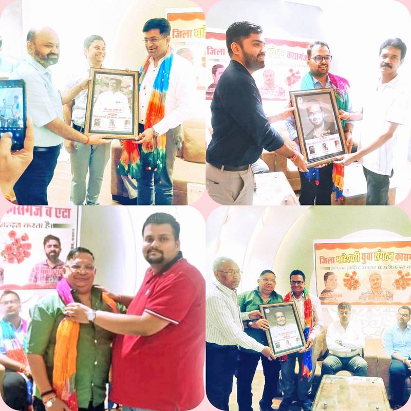 दिनांक 5 6 2025 को जिला माहेश्वरी सभा युवा संगठन कासगंज का सर्कुलर रोड स्थित रोशन लाल रेस्टोरेंट में जिला स्तरीय सम्मेलन का आयोजन किया गया जिसमें जिला माहेश्वरी सभा कासगंज, डीडू माहेश्वरी मंडल, मारवाड़ी माहेश्वरी संघ के पदाधिकारी ने सहभागिता की माहेश्वरी युवा संगठन के राष्ट्रीय अध्यक्ष शरद सोनी, पश्चिमी उत्तर प्रदेश के अध्यक्ष राकेश मोहता एवं उपाध्यक्ष राजकुमार जाखेटिया, पश्चिमी उत्तर प्रदेश के युवा प्रदेश अध्यक्ष मुकुंद केला, प्रदेश मंत्री निश्चल माहेश्वरी को युवा संगठन के पदाधिकारी अध्यक्ष अर्पित माहेश्वरी, मत्री माधव मूना ने पटका एवं मूवमेंट को देकर सम्मान किया। राष्ट्रीय युवा संगठन के अध्यक्ष शरद सोनी ने समाज सेवा के क्षेत्र में उत्कृष्ट कार्य करने वालों की प्रशंसा करते हुए कहा कि युवाओं को समाज को आगे बढ़ाने में अपनी अहम भूमिका निभानी चाहिए उन्होंने कहा युवा व्यापारी से जुड़े सगंठन हर प्रकार की मदद करेगा। 27 प्रदेशों में युवा संगठन का गठन हो चुका है। विदेश में भी युवा संगठन की नींव रखी जा रही है।
