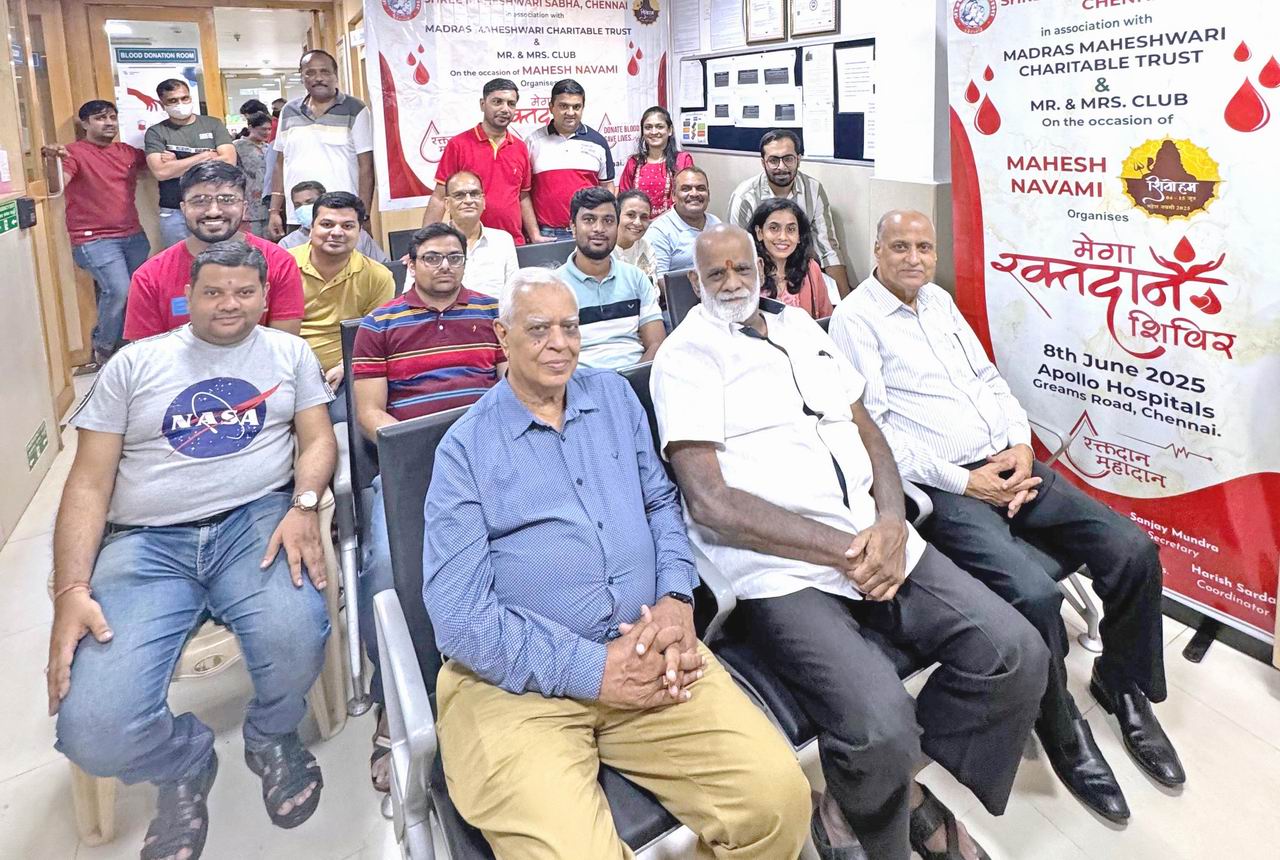 श्री माहेश्वरी सभा चेन्नई व मद्रास माहेश्वरी चैरिटेबल ट्रस्ट के संयुक्त तत्वावधान में, मिस्टर मिसेज क्लब के सहयोग से और अपोलो हॉस्पिटल के सौजन्य से दिनांक 8 जून 2025 को शिवोहम महेश नवमी पर्व के अंतर्गत रक्तदान का विशाल शिविर का आयोजन अपोलो हॉस्पिटल, चेन्नई में सफलता पूर्वक सम्पन्न हुआ।