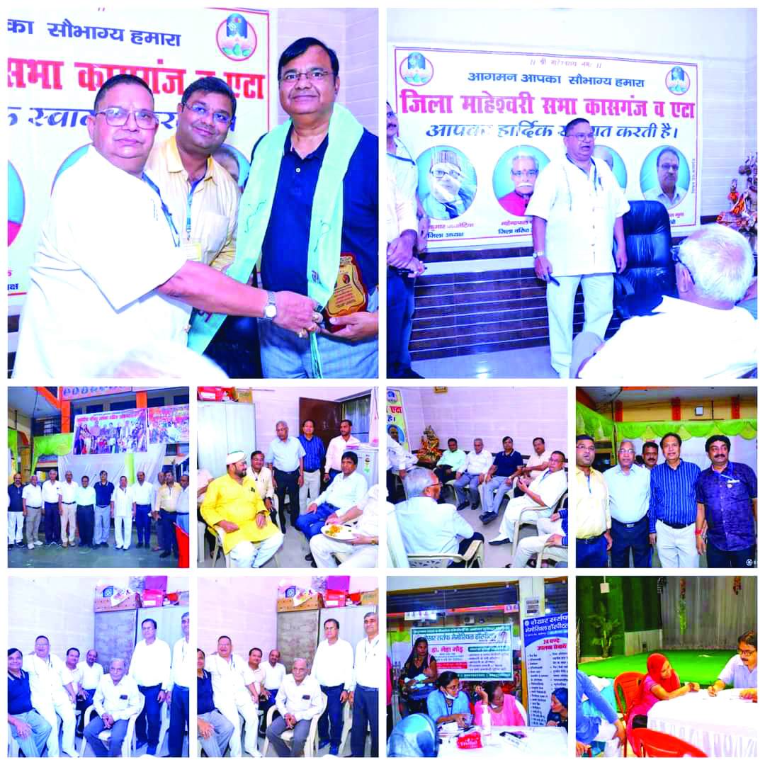 दिनांक 18-9-2023 को गंगा देवी माहेश्वरी भवन रेलवे रोड कासगंज में जिला माहेश्वरी सभा कासगंज व एटा के तत्वधान मे विश्वास माहेश्वरी मेमोरियल ट्रस्ट एवं रघुनंदन प्रसाद रामवती जाखेटिया ट्रस्ट द्वारा निशुल्क स्वास्थ्य शिविर का आयोजन किया गया जिसमें डॉक्टरों द्वारा 342 मरीजों को देखा गया। फ्री दवाई एवं फ्री टेस्टिंग भी की गई। उक्त शिविर में डॉ. कुशल दीप सिंह, डॉ. ऋचा सिंघल सेंगर, डॉ. मौसम गुप्ता एवं डा. नेहा गौड़ अलीगढ से डा. लव गुप्ता वृंदावन से आए इनके अलावा इस अवसर पर डॉ.ए.के. गुप्ता, डॉ. कशिश गुप्ता, डॉ. शैलेंद्र सिंह यदुवंशी, डॉ.अभिषेक गुप्ता और डॉ. सौरभ माहेश्वरी द्वारा मरीजों को देखा गया।