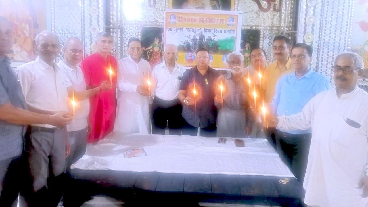 दिनांक 26.7.2025 को जिला माहेश्वरी सभा कासगंज व ऐटा ने 26 वां कारगिल विजय दिवस सायं (8) बजे मारवाडी धर्मशाला पर मनाया गया। जिला अध्यक्ष राजकुमार जाखेटिया ने बताया कि हमारे 545 जवान ईस कारगिल युद्ध में शहीद हुए सभी जवानों की याद में मोमबत्ती जलाकर श्रद्धाजलि दी गयी एवं दो मिनट का मौन रखकर प्रभू से उनकी आत्मा की शान्ति की प्रार्थना की गयी। जिला अध्यक्ष राजकुमार जाखेटिया, वरिष्ठ उपाध्यक्ष महेन्द्र चाडक्य सुरेन्द्र माहेश्वरी, विनय कुमार माहेश्वरी, अनिल माहेश्वरी, योगेश जाखेटिया, रामकुमार माहेश्वरी, दुग्रेश माहेश्वरी, गोपाल झंवर, सचित्तानन्द माहेश्वरी, राकेश माहेश्वरी,आदि उपस्थित रहे।