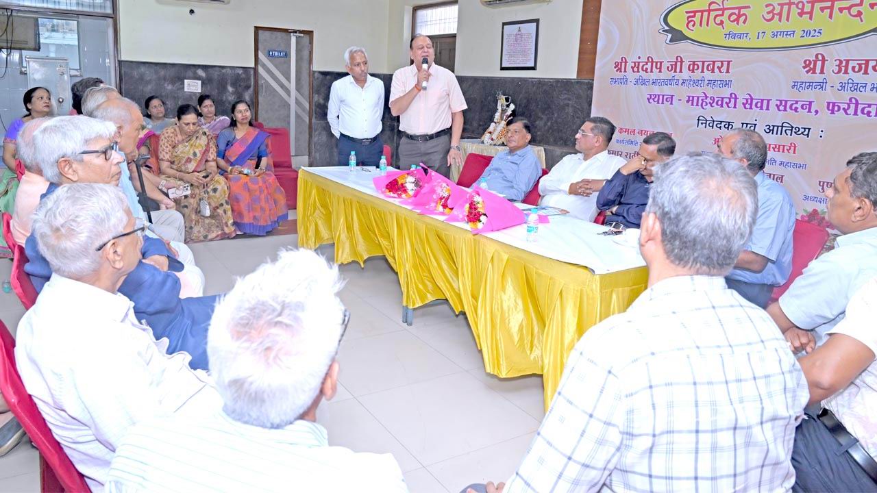 माहेश्वरी मंडल (पंजीकृत) फरीदाबाद द्वारा रविवार, दिनांक 17 अगस्त 2025 को माहेश्वरी भवन 160/7ए फरीदाबाद में संगठन आपके द्वार कार्यक्रम में महासभा के सभापति श्री संदीप काबरा, महामंत्री श्री अजय काबरा एवं उत्तरांचल संयुक्त सचिव श्री ओम तापडिय़ा अपने व्यस्ततम कार्यक्रम के बावजूद समय पर पधार कर उपस्थित समाज बंधुओ के साथ हर विषय पर चर्चा की। माहेश्वरी मंडल अध्यक्ष श्री रामकुमार राठी ने पधारे हुए अतिथियों और समाज बंधुओ का अभिनंदन करते हुए सभापति जी की समाज हेतु कर्मठता की भूरी भूरी प्रशंसा की। सभापति श्री संदीप काबरा ने उपस्थित समाज बंधुओ को महासभा द्वारा किए जा रहे कार्यों की जानकारी देते हुए अंत्योदय परिवारों के उत्थान एवं विभिन्न ट्रस्ट की बात करते हुए सभी समाज बंधुओ को परिवार सहित जोधपुर महाकुंभ में पधारने का आग्रह किया। महामंत्री श्री अजय काबरा ने समाज बंधुओ के साथ चर्चा के दौरान सभी से अपनी बात रखने एवं महासभा से आपकी क्या अपेक्षा है इत्यादि पर बात करते हुए जोधपुर महाकुंभ के बारे में विस्तृत जानकारी दी।