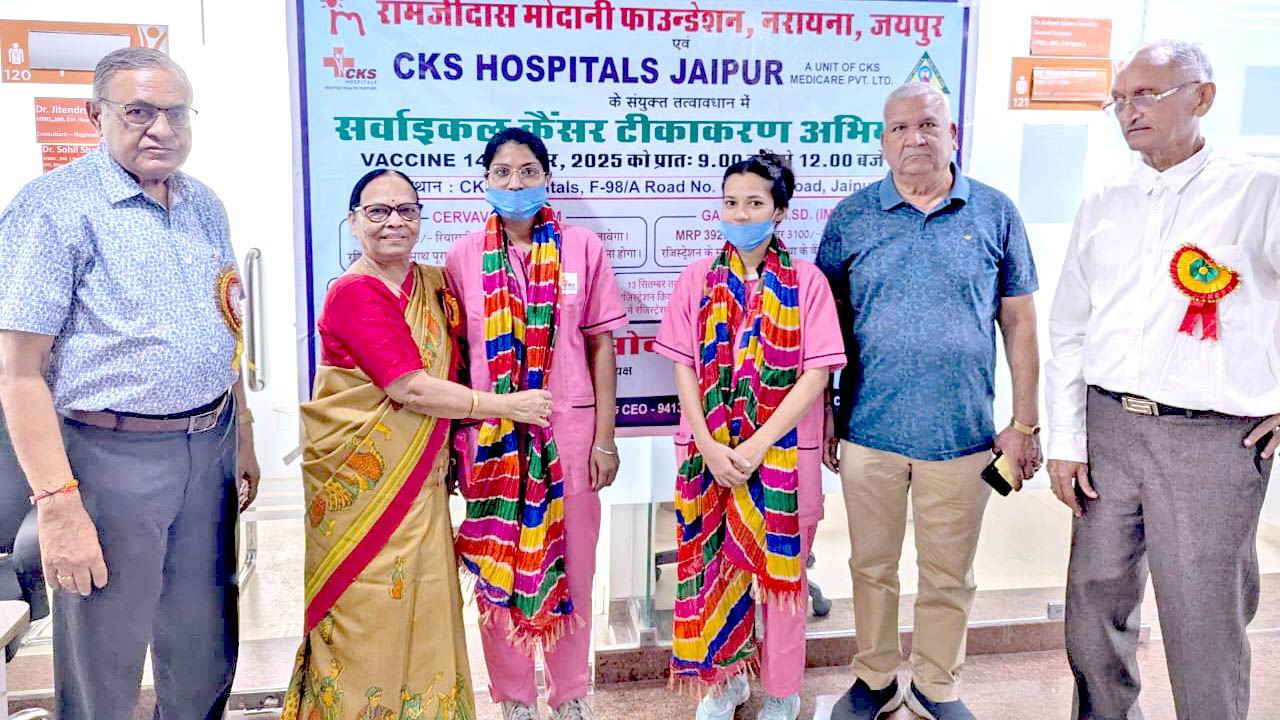दिनांक 14 सितम्बर 2025 को C.K.S हॉस्पिटल सीकर रोड़, विद्याधर नगर में सर्वाइकल कैंसर टीकाकरण का केम्प लगाया गया एवं 15 साल से 26 साल की बालिकाओं के 3 टीके लगाये जाते हैं। इसमें 9 वर्ष से 14 वर्ष तक की बालिकाओं के 2 टीका लगाया जाते हैं। सर्वाइकल कैसर (गर्भाशय ग्रीवा का कैंसर) महिलाओं में होने वाला एक मात्र कैंसर हैं जिसे टीके के जरिये रोका जा सकता हैं। यह ह्यूमन पैपिलोमा वायरस (HPV) के संक्रमण से होता हैं। HPV वैक्सीन से गर्भाशय ग्रीवा की कोशिकाओं को संक्रमण से बचाया जा सकता है।