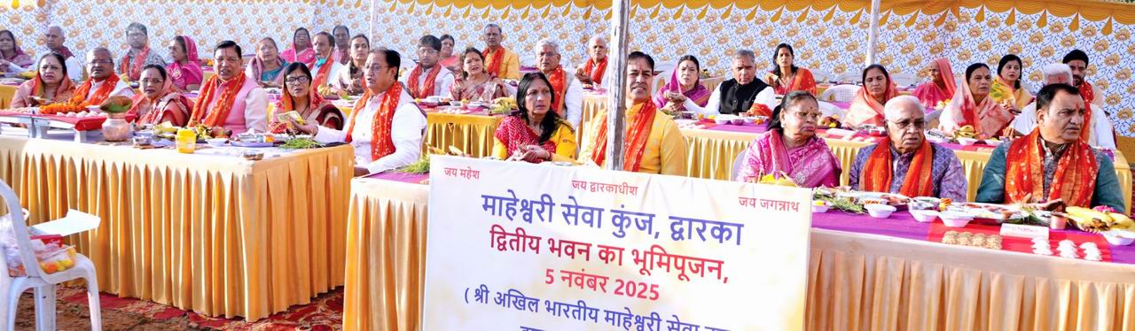 श्री अखिल भारतीय माहेश्वरी सेवा ट्रस्ट द्वारा द्वारका धाम में एक नवीन भवन के निर्माण के लिये 5 नवम्बर 2025 को भूमि पूजन व शिलान्यास कार्यक्रम ट्रस्ट के अध्यक्ष श्री श्यामसुन्दर कासट के नेतृत्व में देश के कोने कोने से पधारे ट्रस्टीयों एवं भामाशाहों की उपस्थिति में सम्पन्न हुआ।