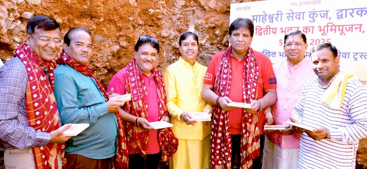 अखिल भारतीय माहेश्वरी सेवा ट्रस्ट द्वारा द्वारका में नवीन भवन का भूमि पूजन सम्पन्न