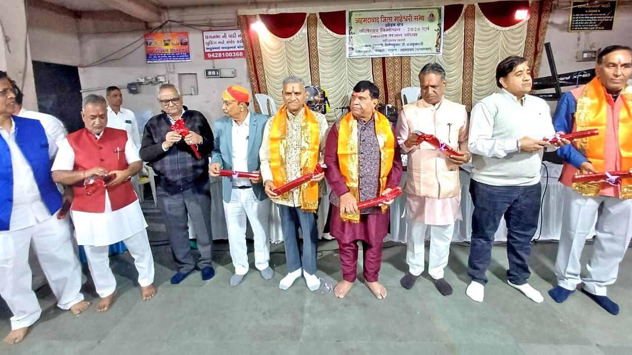 अहमदाबाद-ओढव के अर्बुदा नगर में अहमदाबाद जिला माहेश्वरी सभा की ओर से आयोजित भजन संध्या गायक शुभम सारडा ने अपनी टीम के साथ भगवान कृष्ण के भजनों की सुन्दर प्रस्तुति दी। संगीतमय भजनों की प्रस्तुति पर श्रद्धालु जमकर झूमे। समारोह के दौरान कैलेंडर का विमोचन किया गया। इससे पूर्व कार्यक्रम में आने वाले लोगों का तिलक लगाकर और गायत्री परिवार की ओर से युग निर्माण सत्संग संकल्प भेंट कर स्वागत किया गया। वहीं गौ सुरक्षा पर जोर दिया गया। कार्यक्रम के दौरान माहेश्वरी समाज के गायकों ने सुंदर भजनों की प्रस्तुति दी। गुजरात प्रांतीय माहेश्वरी सभा के अध्यक्ष सुरेश मूंदड़ा, माहेश्वरी सेवा सदन-ओढव के अध्यक्ष सुरेश बाहेती, कैलाश खटोड़ और अन्य अतिथि मौजूद रहे। अतिथियों ने कैलेंडर का विमोचन किया और समाज के लिए इस पहल की सराहना की। कैलेंडर के मुख्य सौजन्यकर्ता नाथूलाल पोरवाल, दिलीप पोरवाल और राजकुमार पोरवाल थे। अहमदाबाद जिला माहेश्वरी सभा के अध्यक्ष चंद्रप्रकाश कासट, मंत्री अरविंद जाजू की विशेष उपस्थिति रही। ओढव कार्यकारिणी के सदस्य रामगोपाल तोतला, राजेंद्र राठी, राजेश तुरकीया, राकेश देवपुरा, मितेश कोठारी, पंकज बांगड़ समेत सभी सदस्यों का विशेष सहयोग रहा। कैलेंडर विमोचन को समाज के लिए उपयोगी बताया।