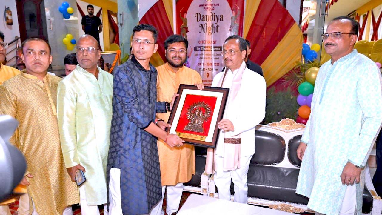 माहेश्वरी समाज लखनऊ के तत्वाधान में माहेश्वरी युवा परिषद द्वारा दिनांक 26-10-2023 को भव्य डांडिया नाइट का आयोजन किया गया। कार्यक्रम में मुख्य अतिथि के रूप में डॉ. दिनेश शर्मा सांसद राज्यसभा एवं पूर्व उपमुख्यमंत्री उत्तर प्रदेश सरकार एवं विशेष अतिथि के रूप में श्री अरुण सक्सेना वन एवं पर्यावरण मंत्री उत्तर प्रदेश सरकार मौजूद रहे। दीप प्रज्वलन एवं महेश वंदना के साथ कार्यक्रम का प्रारंभ हुआ। समाज के सभी वर्गों ने डांडिया कार्यक्रम में अतिउत्साह पूर्वक भाग लिया। माहेश्वरी समाज लखनऊ एवं महिला मंडल के वरिष्ठ सदस्यों की उपस्थिति ने युवाओं का उत्साहवर्धन किया। कार्यक्रम को सफल बनाने में अध्यक्ष सुनील लोया, उपाध्यक्ष वैभव एवं श्याम माहेश्वरी, मंत्री संस्कार बल्दुआ, कोषाध्यक्ष राम भुराडिया का विशेष योगदान रहा। डांडिया नाइट का संचालन सांस्कृतिक मंत्री गौरीशा, हर्षिता एवं आंचल द्वारा बहुत ही सुंदर तरीके से किया गया। स्वागत पटल पर मनन, कृष्णा, आदित्य एवं माधव द्वारा सुविधा प्रदान की गयी। पुरस्कार वितरण एवं सुरुचि भोज के साथ कार्यक्रम का समापन हुआ।