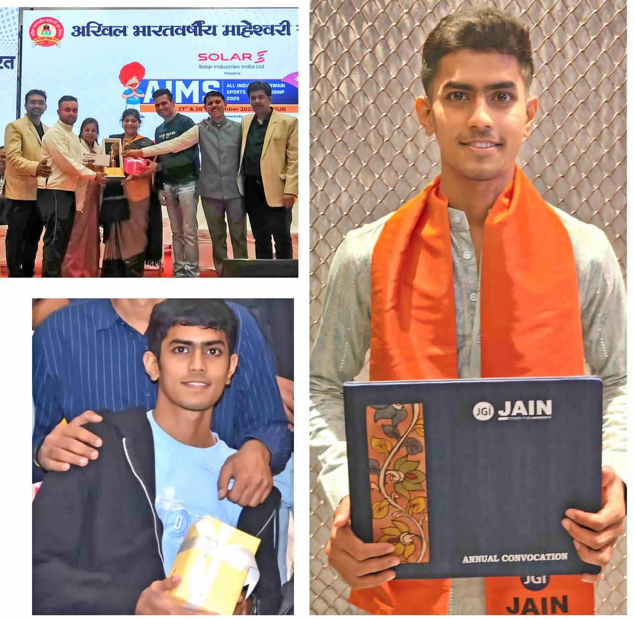 कोयंबटूर माहेश्वरी सभा के युवा सदस्यो पारस तोषनीवाल, हर्ष मालानी, क्रिष मंत्री ने हाल ही मे नागपुर मे 28 दिसम्बर 2026 को सम्पन्न हुए राष्ट्रीय माहेश्वरी खेलकूद प्रतियोगिताओ मे भाग लेते हुए, अपने अद्भुत खेल कौशल का परिचय दिखाते हुए पुरस्कार जीते। हर्ष मालानी ने फ्री स्टाइल तैराकी मे स्वर्ण पदक, पारस तोषनीवाल ने फुटसल मे टीम रजत पदक जीता। क्रिष मंत्री ने क्रिकेट मे सेंचुरी जड़ी एवं दो मैचो मे मेन आफ द मैच रहे। कोयंबटूर के तीनो खिलाडियो ने तमिलनाडु, केरल एवं पांडिचेरी दक्षिणांचल प्रादेशिक माहेश्वरी सभा की और से भाग लेते हुए अपने उत्कृष्ट खेलो का प्रदर्शन किया। तीनो को बहुत-बहुत बधाई साथ ही उनके परिजनो को भी बधाई जिन्होंने पूरी मेहनत एवं लगन से इनको प्रोत्साहन देकर इस मुकाम तक पहुंचाया। माहेश्वरी सभा की तरफ से तीनो को आशीर्वाद एवं शुभकामनाएं है कि आगे भी इसी प्रकार ऊंचाइयों पर बढ़ते रहे।