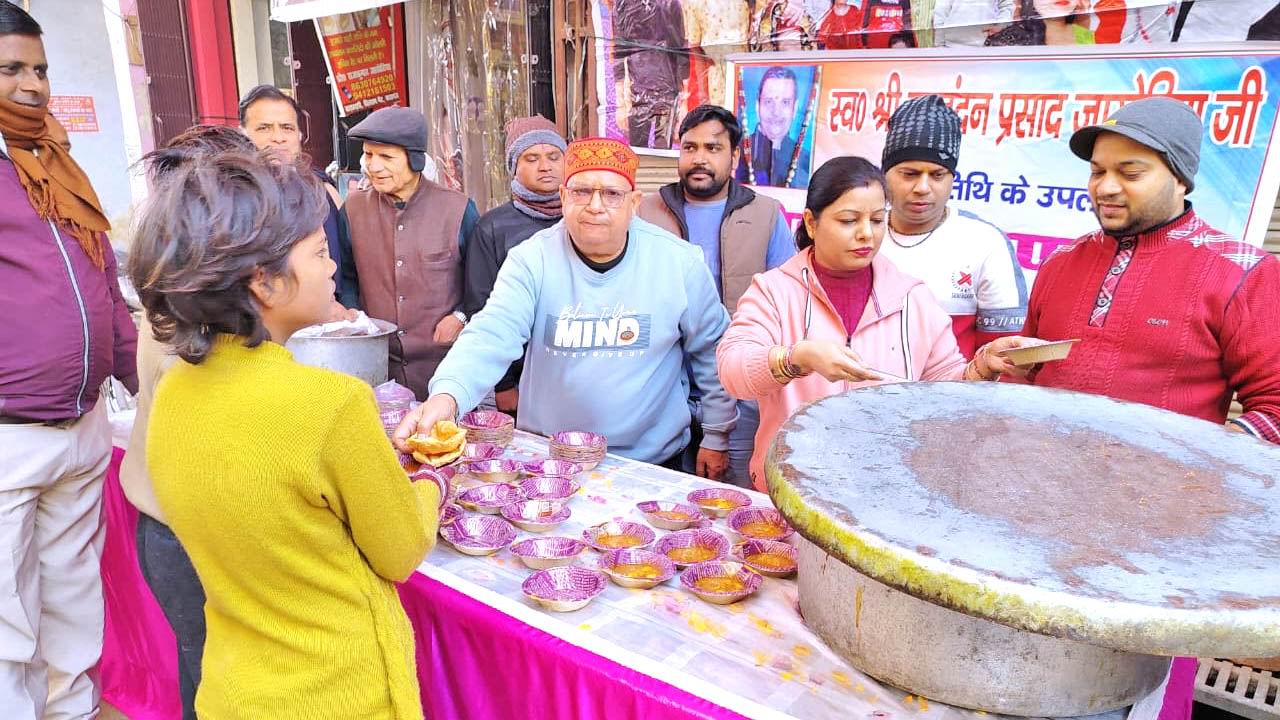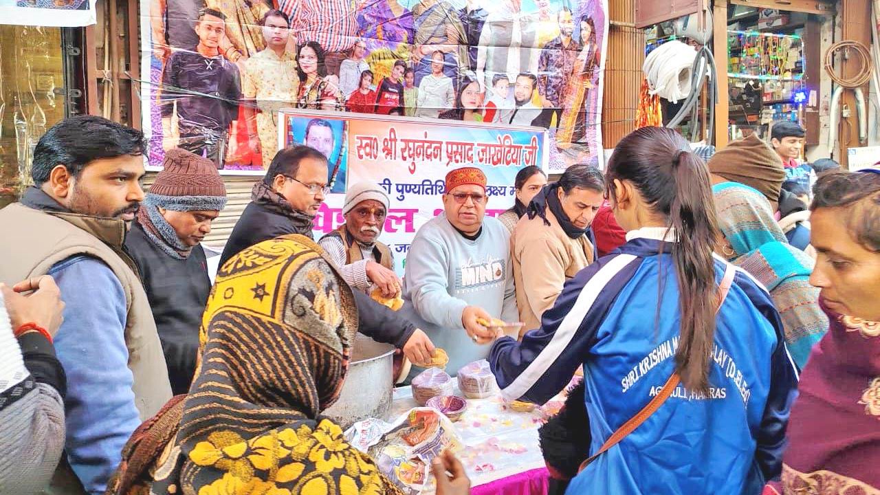 स्व. श्री रघुनंदन प्रसाद जाखेटिया कासगंज की 15वीं पुण्यतिथि तिथि पर 16-1-2026 दिन शुक्रवार को दोपहर 12:30 बजे से विशाल भंडारा राधास्वामी ज्वेलर्स विलराम गेट कासगंज में किया गया और असहाय लोगों को कपड़े वितरित किए। इस अवसर पर मधू जाखेटिया, तनू जागेटिया, वन्दना जागेटिया, राजकुमार जाखेटिया, योगेश जाखेटिया, प्रकाश जाखेटिया, सुकृत जागेटिया, सौरव जाखेटिया, अर्नव जागेटिया, शिवासं जाखेटिया, सुरेन्द्र माहेश्वरी, अरविंद काबरा, सुनील काबरा, घनश्याम मूना, महेंद्र चांडक, अनुराग माहेश्वरी, ऐ.के. सिंह, अनिल काकाणी, विनीत जाजू, शेष काबरा, नितन माहेश्वरी, उपेन्द्र वदियादा, नरेश डांगरा, विनय वदियादा, राजेन्द्र बिरला, पवन बिरला, सुनील माहेश्वरी आदि उपस्थित रहे।