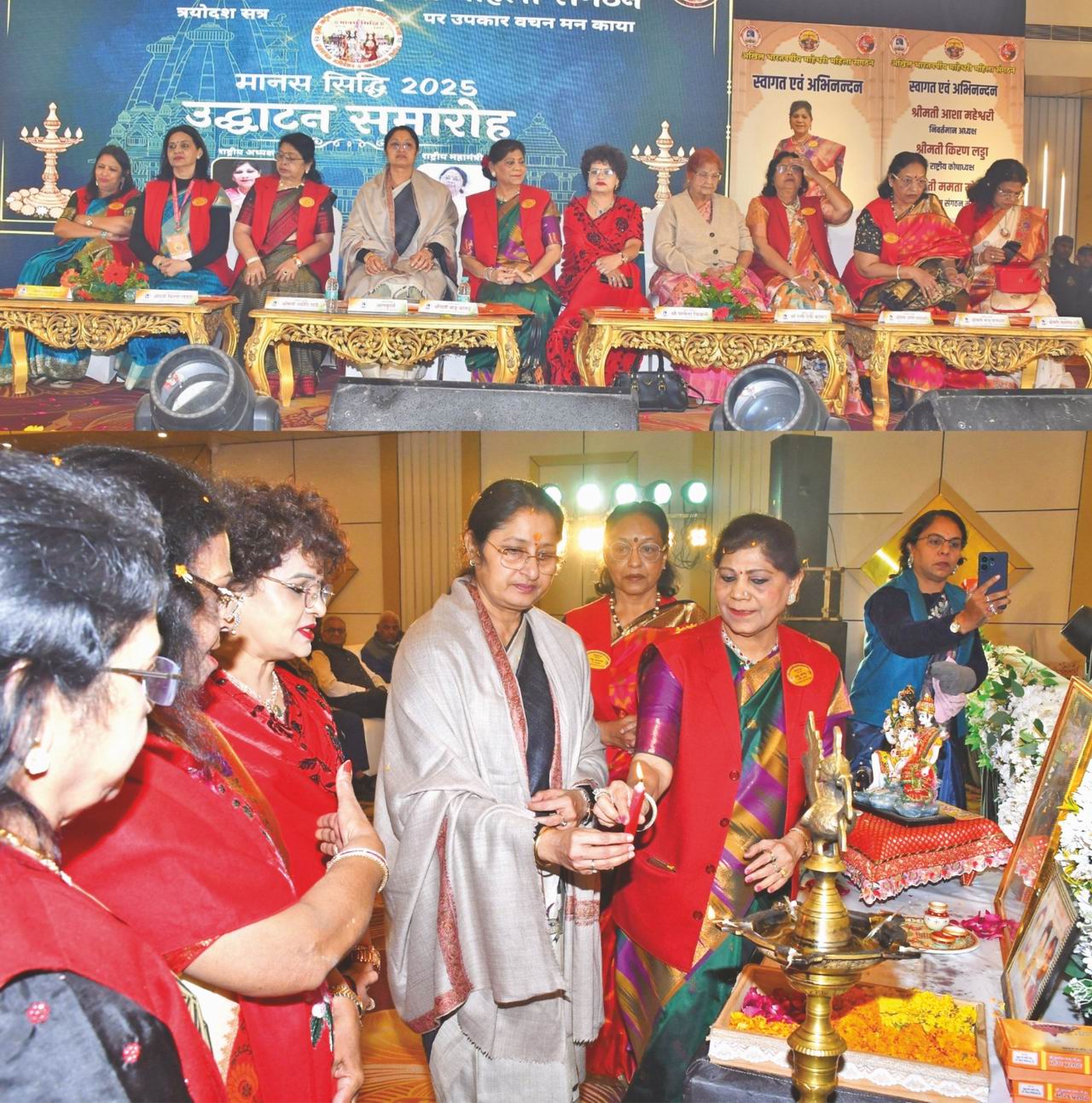 उद्घाटनकर्ता श्रीमती अन्नपूर्णा देवी द्वारा अपने उद्बोधन मे कहा... राष्ट्रीय अध्यक्ष श्रीमती मंजू बांगड़ के नेतृत्व में महिला संगठन बहुत ही अच्छे ढंग से कार्यों को कर रही है। आज इस कार्यक्रम के माध्यम से अयोध्या की यह पुण्य भूमि एक ऐसे आयोजन की साक्षी बन रही है जहां संस्कृति, साधना, संकल्प तीनों का अद्भुत संगम हो रहा है। राम जन्मभूमि हमें याद दिलाती है की मर्यादा जब जीवन का आधार बनती है, तब राष्ट्र महान बनता है। नर सेवा नारायण सेवा की भावना समाज के लिए प्रेरक शक्ति है और संस्कार, संगठन और संकल्प से राष्ट्र निर्माण कैसे होता है यह आपके संगठन ने सिद्ध किया है। नारी केवल शक्ति की प्रतीक नही अपितु शक्ति का साक्षात स्वरूप भी है। आधुनिक सोच के साथ भविष्य निर्माण का भी प्रयास कर रही है। आध्यात्मिक के साथ आर्टिफिशियल इंटेलिजेंस के माध्यम से विरासत के साथ विकास के मंत्र को भी अपनाया जा रहा है। आपके संगठन द्वारा चलाए जा रहे कार्यक्रम आदरणीय प्रधानमंत्री जी के आत्मनिर्भर भारत अभियान को गति प्रदान करेगा और स्वदेशी अपनाने का जो मंत्र है उसको भी शक्ति प्रदान करेगा। हमें विश्व में नेतृत्व करना है तो हमें अपनी जड़ों से जुडऩा होगा। सरकार द्वारा लिए जा रहे हैं जनहित कार्यक्रमों को जैसे एक पेड़ मां के नाम, साइबर अवेयरनेस, मेगा मेडिसिनल प्लांटेशन, वस्त्रम प्रोजेक्ट, योग शिविर, भाषा और संस्कृति को लेकर किए जा रहे कार्यक्रमों के साथ महिला व बाल विकास की उन्नति में सहभागिता द्वारा द्वारा बहनों को राष्ट्र सेवा में जुडऩे हेतु प्रेरित किया।
