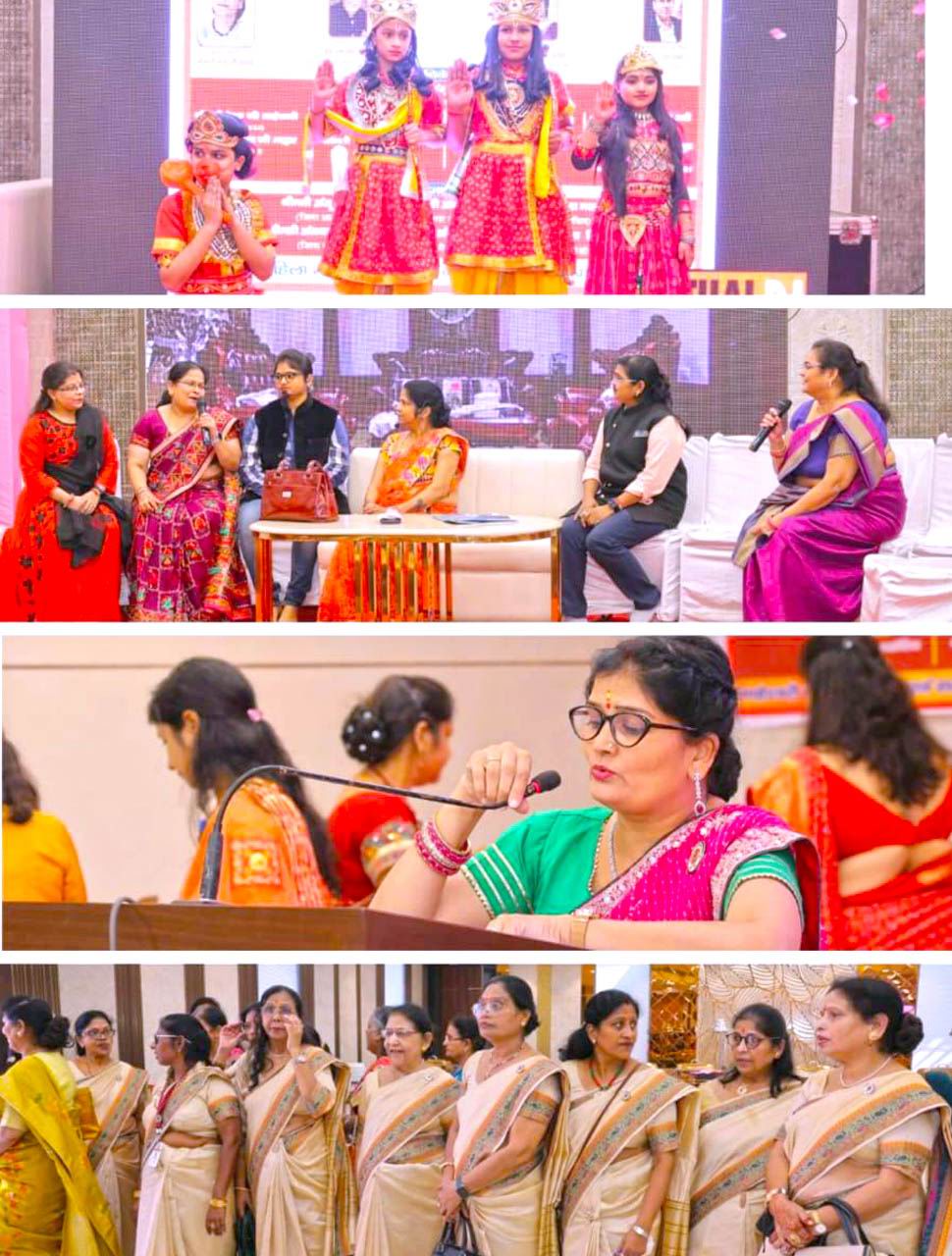 राष्ट्रीय अध्यक्षा श्रीमती मंजू बांगड़ एवं संस्कृति सिद्धांत प्रभारी श्रीमती प्रेमा झंवर द्वारा सांस्कृतिक कार्यक्रम प्रतिभागियों को संयुक्त 5100 की धनराशि प्रदान की। विशिष्ट अतिथि प्रेमा झंवर ने बहनों को बताया कि हिंदू रीति रिवाज का हमारे जीवन में क्या महत्व है और इनके वैज्ञानिक तथ्य क्या है। महिलाएं जो जेवर पहनती हैं सभी के पीछे कुछ ना कुछ वैज्ञानिक तथ्य छुपा हुआ होता है। पूर्व दिल्ली प्रदेश अध्यक्ष श्री एस.एन. चांडक द्वारा सभी का मार्गदर्शन किया उन्होंने बताया कि कैसे मेहनत से कर्म करके जीवन में बुलंदियों को छुआ जा सकता है। संस्थापिका अध्यक्ष रेखा माहेश्वरी के आशीर्वचनों से सबको मार्गदर्शन प्राप्त हुआ। स्वयं सिद्धा समिति के अंतर्गत संस्थापक अध्यक्ष श्रीमती रेखा माहेश्वरी को उनके 75वें जन्मदिवस व कार्यसमिति विनीता राठी व प्रदेश संरक्षिका कांता गगरानी को संगठन की बहनों को मोटिवेट करने हेतु शॉल ओढ़ाकर सम्मानित किया गया। राष्ट्रीय कार्य समिति विनीता राठी द्वारा सफलता के मूल मंत्रों पर प्रकाश डाला गया। प्रदेश संरक्षिका कांता गगरानी द्वारा सेवा कार्यों की मूल्यांकन के संबंधित जानकारी दी गई। संजीवन सिद्धा समिति के अंतर्गत बुलंदशहर के डॉ. संजय शर्मा कार्डियोलॉजिस्ट ने अपने वक्तव्य में कहा कम खाइए गम खाइए स्वस्थ रहिए मस्त रहिए। अष्ट सिद्धा समिति के अंतर्गत 24 संगठनों द्वारा थाल करवा सज्जा का सुंदर प्रदर्शन किया गया। रघुुकुल रीत सिद्धा समिति के अंतर्गत डिबाई संगठन द्वारा रिश्तों पर आधारित पारिवारिक नाटिका कहानी घर घर की का सुंदर मंचन किया गया। सुंदर स्वागत गान द्वारा अतिथियों को आमंत्रित किया गया। संस्कृति सिद्धा समिति के अंतर्गत बुलंदशहर संगठन की बहुओं द्वारा त्योंहारों की छटा बिखेरता रंगारंग नृत्य कायक्रम व सभा में उपस्थित 200 बहनों द्वारा श्री रामचंद्र जी की झांकी की दीपकों से आरती कर पूरा माहौल राममय हो गया। युगल सिद्धा गठबंधन प्रदेश से 114 बायोडाटा प्राप्त हुए तथा संकल्प सिद्धा बेसहारा वृद्ध जनों का सम्मान किया गया। सभी प्रतियोगिताओं के पारितोषिक प्रदेश द्वारा प्रदान किए गए। नगर माहेश्वरी सभा एवं माहेश्वरी युवा मंडल के अध्यक्ष मंत्री व कोषाध्यक्ष को सम्मानित किया गया। कार्यक्रम में बुलंदशहर जिला अध्यक्ष अंजू मोहता, जिला सचिव अंजना लखोटिया, संरक्षिका अंजू जांबदिया व सचिव नीना मालानी, गीता बिसानी, रोहिल्ला मुना का भरपूर सहयोग रहा। राष्ट्रीय गान के साथ कार्यक्रम संपन्न हुआ।