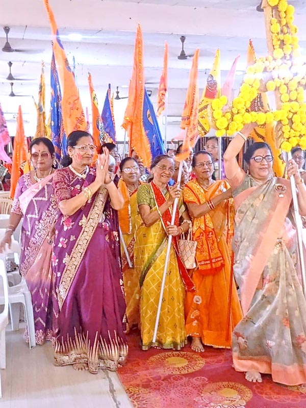 तेजस्विनी ग्रुप की सदस्यों—वीणा चांडक, रेखा मोहता, शांता लढ्ढा, शोभा बाहेती, अरुणा लढ्ढा, वैजयंती करनानी एवं राजश्री लढ्ढा—द्वारा सभी पदाधिकारियों का इंद्रधनुषी रंगों की टोपियां पहनाकर, इत्र एवं ब्रोच के साथ स्वागत किया गया। साथ ही, श्रीमती राजकुंवर लढ्ढा के सौजन्य से रजत पर्व (2002 से 2027) के उपलक्ष में सभी पूर्व एवं वर्तमान पदाधिकारी बहनों का दुपट्टा ओढ़ाकर सम्मान किया गया।