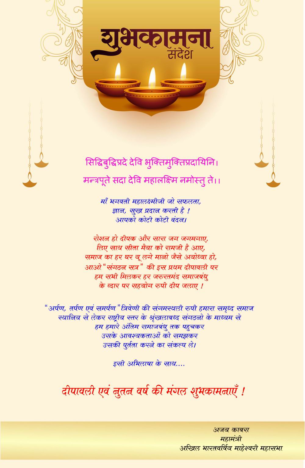 अखिल भारतवर्षीय माहेश्वरी महासभा शुभकामना संदेश