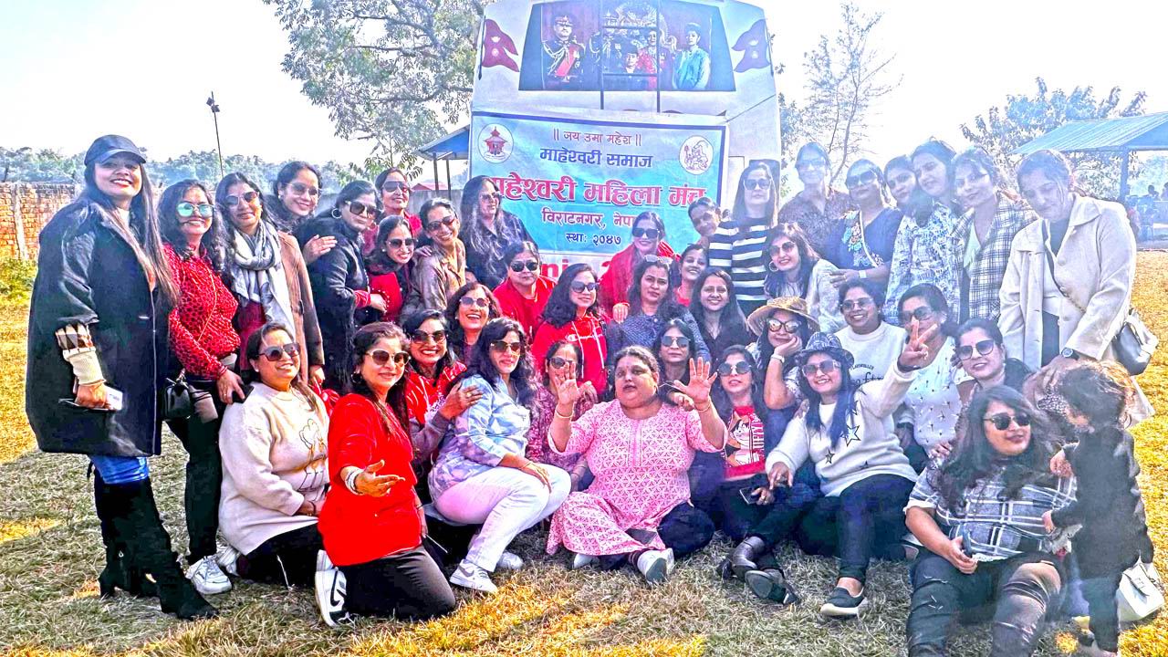 माहेश्वरी महिला मंच विराटनगर द्वारा दिनांक 5 जनवरी 2024 को पिकनिक का आयोजन त्रिवेणी रिसोर्ट इटहरी में किया गया। जिसमें कुल 51 जनों की सहभागिता थी। कार्यक्रम की संयोजिका श्रीमती पूजा सोमानी तथा सहसंयोजिका श्रीमती पूजा राठी ने बहुत ही सफलतापूर्वक कार्यक्रम का आयोजन किया। मंच की सदस्य श्रीमती पूजा सदानी ने रोमांचक गेम्स खिलाए। सभी ने पिकनिक का काफी आनंद उठाया तथा स्वादिष्ट भोजन एवं मनोरंजन रील व गेम में पार्टिसिपेट किया। मंच की बहनों के साथ अन्य समाज की बहनों ने भी पिकनिक के आयोजन में सहभागिता ली।