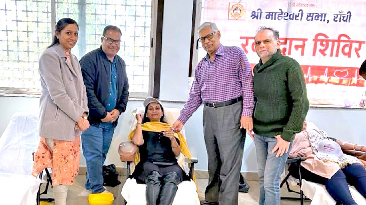 श्री माहेश्वरी सभा रांची ने नागरमल मोदी सेवा सदन के सहयोग से 14 जनवरी को माहेश्वरी भवन में रक्तदान शिविर का आयोजन किया गया। रक्तदान शिविर में दाताओं का उत्साह अतुलनीय था। कुल 103 यूनिट रक्तदान हुआ जिसमें महिलाओं की भागीदारी 30% रही। रक्तदान शिविर के संयोजक विपिन भाला, दिनेश काबरा, उत्सव मंत्री एवं श्रीमती रितिका सारडा थी। 14 जनवरी को ही शैलबी डिवाइन सुपर स्पेशलिटी हॉस्पिटल एवं श्री पद्मनाभ आई इंस्टीट्यूट के सहयोग से नि:शुल्क मेघा चिकित्सा कैंप एवं नेत्र जांच शिविर का आयोजन किया गया। मेगा कैंप में ऑर्थो के डॉक्टर विवेक कुमार डेविड, न्यूरो सर्जन डॉक्टर हेमंत अलडा, एवं जेनरल फिजिशियन डॉक्टर आर के उपाध्याय ने अपनी सेवाएं दी। BP, SUGAR, ECG और BMD की नि:शुल्क जाँच की गई। इस सुविधा का लाभ 80 से अधिक लोगों ने लिया। कार्यक्रम के संयोजक मनीष खटोड़ थे। इस अवसर पर राजकुमार मारू, किशन साबू, नरेंद्र लखोटिया, शिव शंकर साबू, अशोक साबू, विनय मंत्री, सौरभ साबू, श्रीमती संगीता चितलांगिया, अनिता साबू, बिमला फलोड़ विशेष रूप से उपस्थित थे।