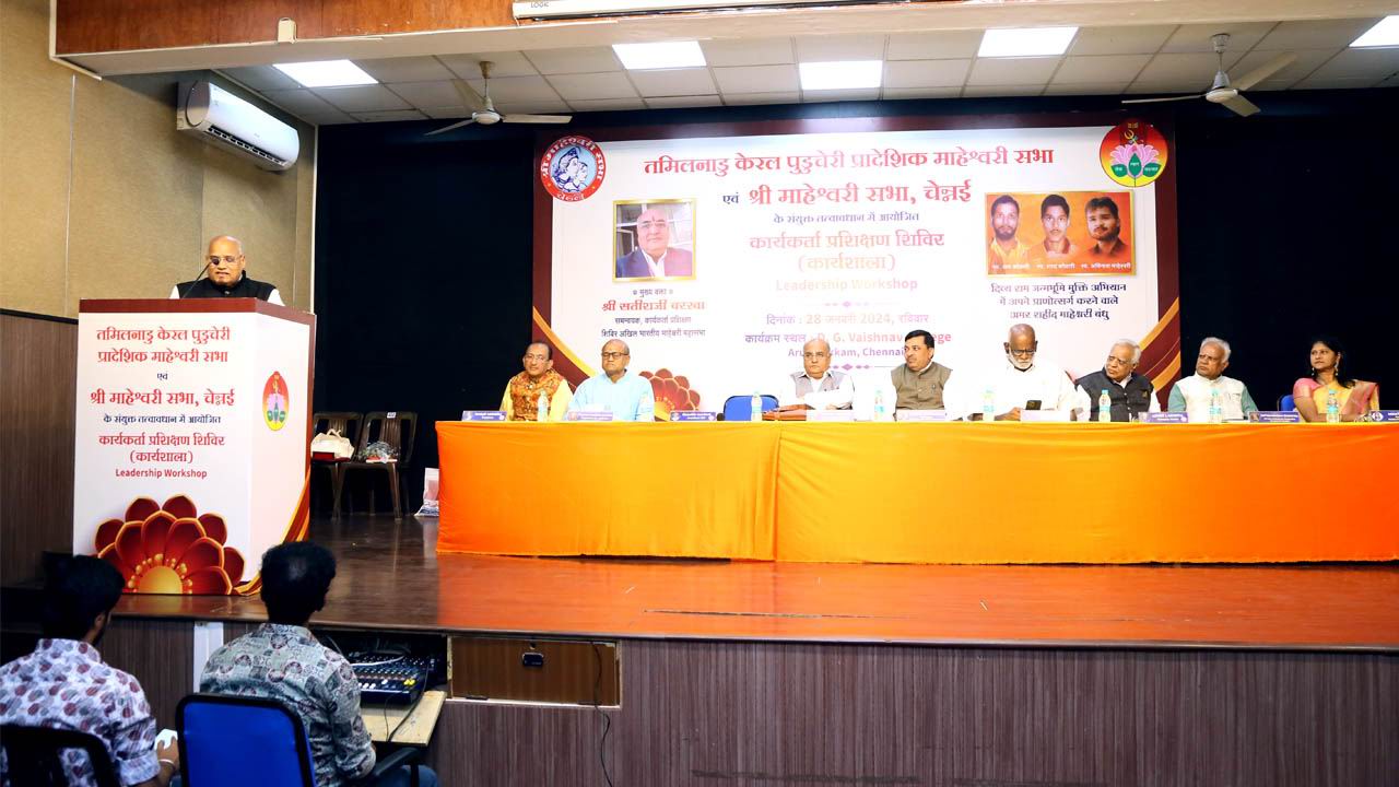 तमिलनाडु केरल पांडिचेरी प्रादेशिक माहेश्वरी सभा एवं श्री माहेश्वरी सभा चेन्नई के संयुक्त तत्वावधान में कार्यकर्ता प्रशिक्षण शिविर (कार्यशाला) स्थानीय डीजी वैष्णव कॉलेज के सभागार मे संपन्न हुआ। सर्वप्रथम कॉलेज प्रांगण में गणेश मंदिर पूजा से हुई। कार्यक्रम की शुरुआत दीपप्रज्वलन के साथ शुरू हुई। इससे पहले सचिव संजय मूँदडा ने अखिल भारतवर्षीय माहेश्वरी महासभा दक्षिणांचल के उपसभापति श्री अरूण भंगडिय़ा, मुख्य वक्ता श्री सतीश चरखा, तमिलनाडु केरल पॉण्डिचेरी के अध्यक्ष श्री प्रमोद मालपनी, सभा अध्यक्ष डॉ. अशोक जे. मूँधडा, मद्रास माहेश्वरी चैरिटेबल के प्रबंध न्यासी श्री अशोक लखोटिया, कार्यसमिति के सदस्य श्री सत्यनारायण भूतडा, तमिलनाडु केरल पांडिचेरी प्रादेशिक माहेश्वरी महिला की अध्यक्ष श्रीमति ममता दम्मानी, कार्यक्रम समन्वयक श्री चंद्र प्रकाश मालपानी को मनचासिन कराया गया। श्री माहेश्वरी सभा के अध्यक्ष डॉ. अशोक जे. मूंधड़ा ने अपने स्वागत भाषण में बताया कि पूरे माहेश्वरी समाज के लिए गर्व की बात है कि सतीश जी चरखा आज अपने सम्मुख है और हमे इसका लाभ लेना है। कार्यकर्ता प्रशिक्षण शिविर, अखिल भारतीय माहेश्वरी महासभा के सतीश चरखा और श्री अरुण भांगडिया को शाल व स्मृति चिन्ह से सम्मान किया गया।