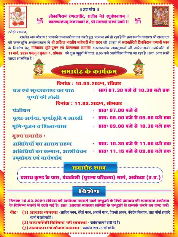अयोध्या में भवन का भूमि-पूजन एवं शिलान्यास समारोह 11 मार्च, 2024 को होगा